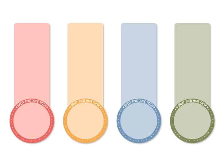 Our Colour Pop labels will help your food products to sing. Building a bright and cheery brand in an instant, this fab foursome are available in Coral Red, Mustard Yellow, Sky Blue and Olive Green harmonising with a wide variety of branding and packaging and bringing a friendly pop of colour to your food labels. Featuring ‘* Good Food Made Fresh *’ messaging and a laminated dotted border for added pop. These UK-made labels have been designed to fit both standard and deep-fill wedges (along with a wide variety of other packaging products) wherever a pop of colour is desired.