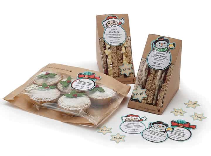 In the bleak midwinter this jolly trio bring a retro festive feel to your Christmas sandwiches and snacks. Featuring Father Christmas, snowman and bauble designs (three of each on every sheet) these fun yet versatile labels have been created to fit a wide range of packaging. Every label comes with a bonus star sticker too to further highlight your yuletide treats. Pair with our Plain Nutri Label to include nutri data back of pack. Compatible with our LabelLogic and LabelLogic Live software.