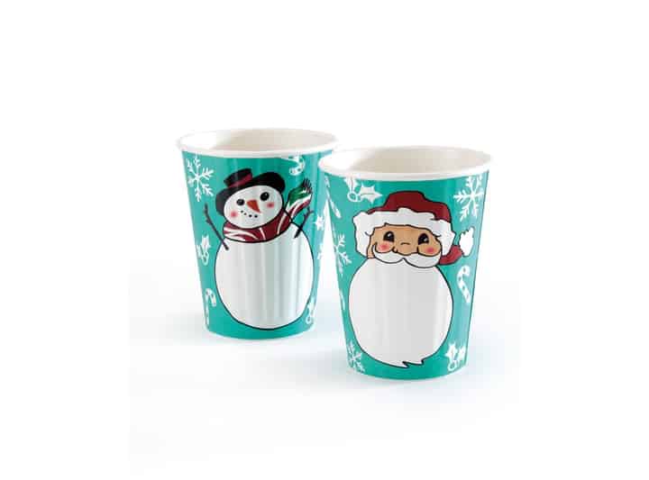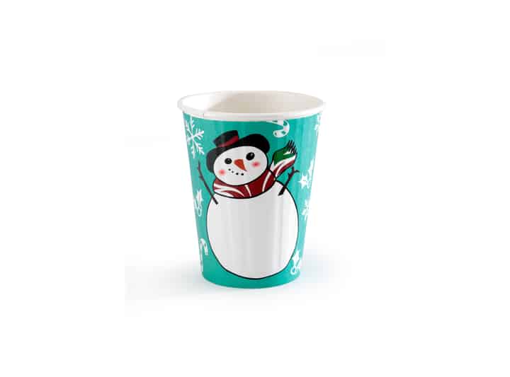 The Festive Favourites 12oz bio cup is full of winter cheer. Featuring Father Christmas and Snowman characters on a holly, snowflake and candy cane print, this disposable, certified compostable Christmas cup brings a jolly retro feel to your festive beverage offering. Utilising sustainable plant-based materials, this seasonal takeaway cup is made of paper and lined with a corn starch derived PLA. What’s more, it has a double walled construction that keeps cold drinks cold and hot drinks hot while the cup itself remains comfortable to handle. Like all of our bio cups, Festive Favourites has been (EN13432) certified industrially compostable, this means that it will break down in an industrial composting environment (where services are available). A certified compostable cup lid is also available.