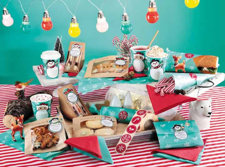 The berry-red semi-gloss Festive Favourites sticker showcases four retro seasonal designs – snowflake, candy cane, holly and ‘Seasons Greetings’ - on one jolly roll. Use to highlight items in your Christmas meal deal offerings as well as to seal Christmas sandwiches, festive bakes and other seasonal snacks wrapped in our matching Festive Favourites Deli Paper.