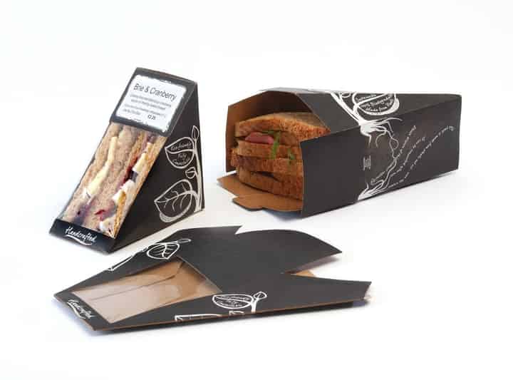 The Gastro Deep-Fill Clip Pack Wedge creates a premium deli-style presentation for your sandwiches. The striking chalk-on-slate effect reflects a quality 'Gastro' image while the bold plant design states the handcrafted nature of your produce.