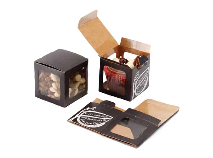 Available flat packed in boxes of 500, our nut snack box provides a superior barrier, retains product freshness and also serves as the windows.