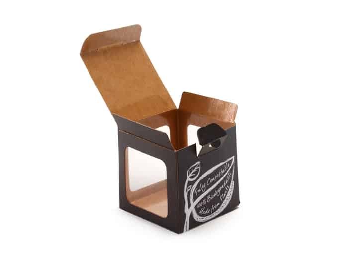 The Gastro Snack Cube has been designed specifically for 'gastro grazers'. These snack boxes made from plant-based materials have three large viewing windows to display the generous portion of nuts, sweets and other treats inside, while the bold plant design creates a premium deli-style presentation on the counter.
