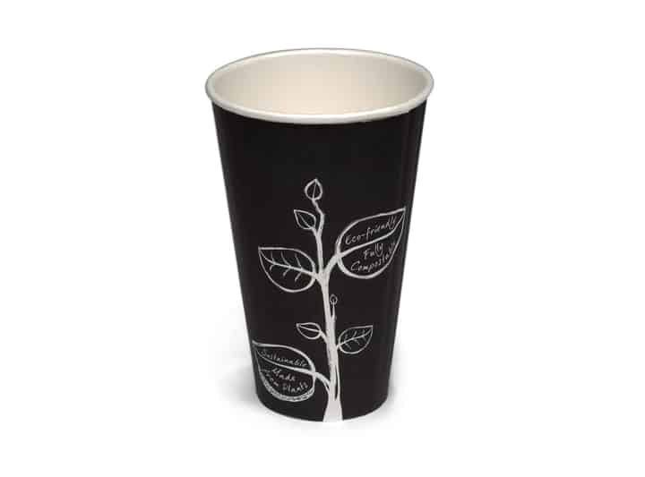 Tall, dark, compostable and handsome, our 16oz Gastro takeaway cup is quite the catch and ever such a smooth talker (he’s printed with ‘Made from Plants’ and ‘Freshly Served’ messaging). What’s more, you can blow hot and cold with him as much as you like because this double walled cup keeps drinks, not hands, the temperature you intended. Corny? Well he does have a corn starch-based PLA liner and when you're ready to chuck him he’s EN13432 certified making him suitable for industrial composting (wherever facilitated).