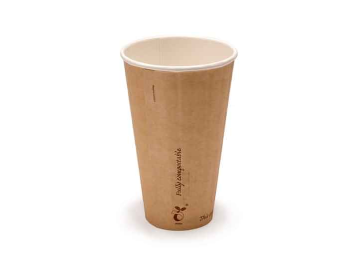 Our 16oz Natural takeaway cup is made from renewably managed materials and also utilises an aqueous (water-based) liner and water-based inks, making it a gentle giant. As a certified industrial (to EN13432) and home compostable cup it may be industrially composted (where facilitated) or disposed of in a home compost environment and it has been printed with these eco credentials.