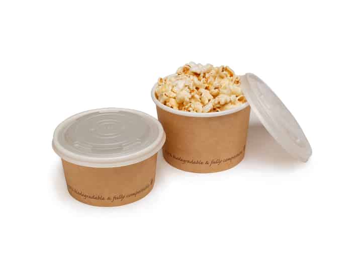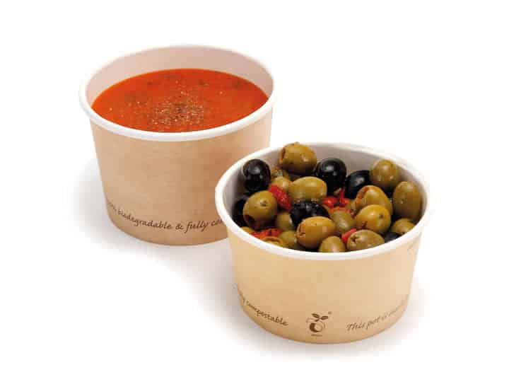 EN13432 certified, our compostable food containers are made from card with a corn starch (PLA) liner. Each plant-based and plastic free pot is printed with the seedling logo, ‘fully compostable’ and ‘this pot is made from plants, not oil’ messaging. What’s more, the pots will break down in an industrial composting environment (where available). Compostable lid options also available.