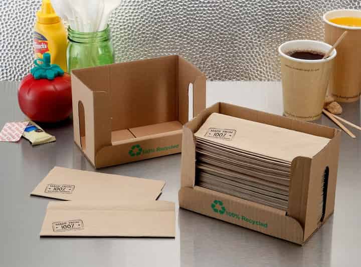 The napkins and dispensers are suitable for recycling.