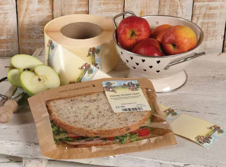 Full colour, hand-drawn illustration, in a traditional style provides a wholesome feel to your products. Versatile design and shape works effectively on all bakery products, sandwiches and most other packaged products.